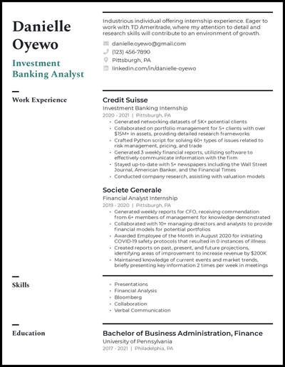 Investment Banking Resume Sample